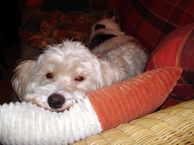 Ab ins Körbchen? Neee.... ab in Mama's Bett, auf Mama's Kopfkissen, und Mama's Hörbuch lauschen ;-)
