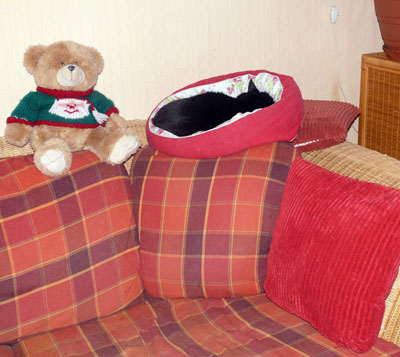 Max ist jetzt fast 15, und er ist sehr leicht glücklich zu machen :-) Ich liebe sie, diese ALTEN. Sie haben ihren Charakter, lassen sich auf keine Diskussionen mehr ein, und verzeihen uns so nachsichtig, dass wir immer noch versuchen, sie zu "erziehen" ;-) Aber wenn man so lange zusammen lebt, wie wir beide, Max und ich, weiß man, was der andere gern hat. Und so dachte ich, man müsste doch mal wieder ein Aussichts-Ruhe-Plätzchen für Max basteln. War gar nicht schwer. Wozu ist so 'ne Sofalehne denn sonst da?